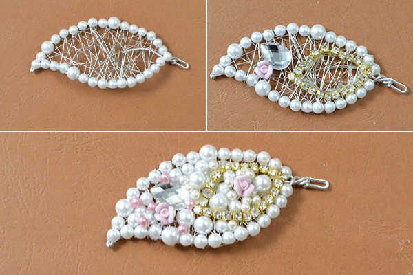 3, añadir un círculo de perlas de diferentes tamaños en la hoja de alambre como a continuación.