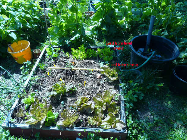El sensor funcionó muy bien. Apague la bomba en aproximadamente 1,5 minutos (la cama era algo seca, que había sido riego lo debido a esta prueba). Entonces sacó el sensor y la bomba de encendido otra vez. Lo dejo correr porque quería comprobar el sensor de nivel. En unos 15 minutos, cuando se alcanzó el nivel adecuado, la bomba cierre perfectamente.