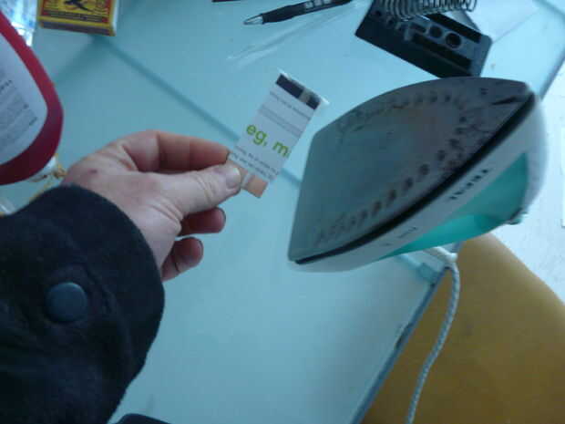 -Colocar el diseño impreso, boca abajo sobre el cobre y sujetarlo con los dedos