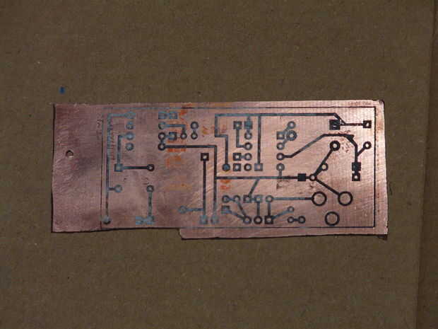 Aunque esto no es un tutorial sobre cómo hacer tus propias placas de circuito impreso, yo rápidamente te llevará por los pasos de cómo lo hice. Las imágenes que utilizo son no específicamente de esta junta, sino de otra junta, pero el método es el mismo: