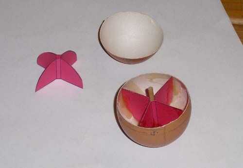 5. ahora la cabeza: gracias al eje fijo en el cuerpo tuve que agregar el pegamento y hacer las costuras del huevo alinee. Por pura coincidencia la cruz cuerpo abiertos a los lados, frente y parte posterior, mientras que la parte superior fue dada vuelta 45 grados, dividiendo cada espacio de la parte inferior a la mitad. Bueno para la posterior instalación eléctrica...