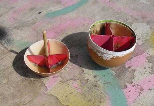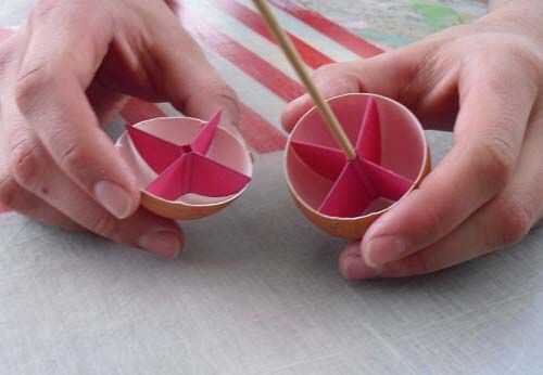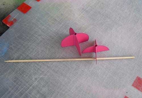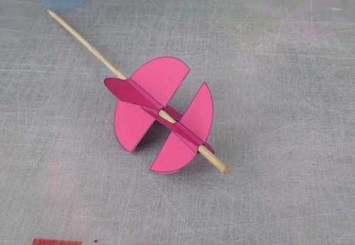 2. el palo de madera shashlik atravesando los dos estabilizadores, hecho de papel de 250 gr/m2.
