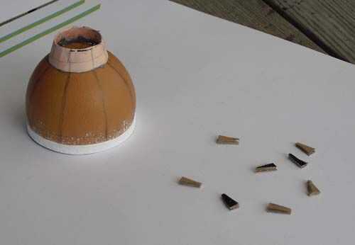 2. pegué el anillo con pegamento epoxi, que ayudó a igualar los vacíos existentes. También hizo el papel muy delgado más rígido. Tenga en cuenta que el cuerpo se divide (según los estabilizadores interiores) en ocho rayas "iguales".