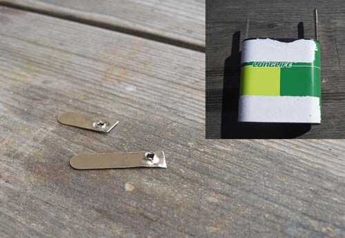 1. ahora el interior eléctrico, nada complicado. Corté de las lenguas de una vieja batería de V 4,5, que serviría como un interruptor.