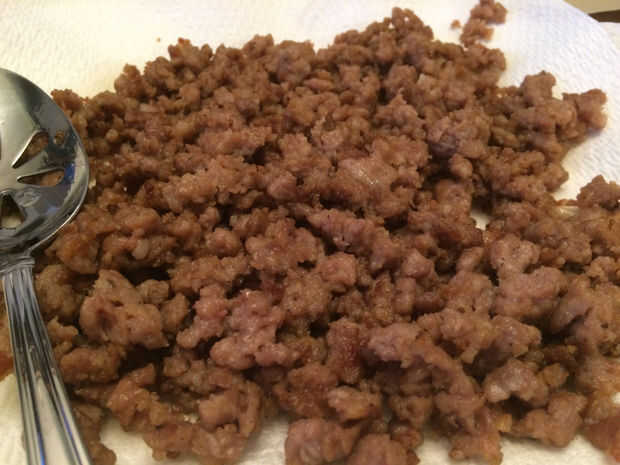 Codificar su salchicha. Colóquelo a un lado a drenar, pero no descarga los goteos. Usted los necesitará más adelante.