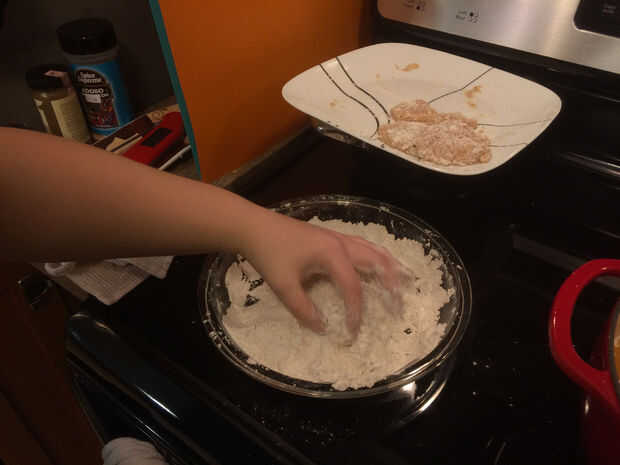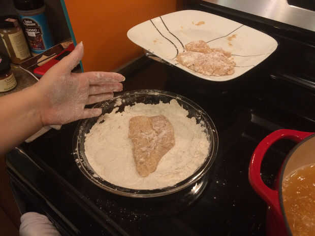 Tanto como usted cree una rastra de harina es suficiente, te equivocas. La primera capa se absorber jugos del pollo y se adhieren a la carne. La segunda capa es la corteza crujiente y el sabor.