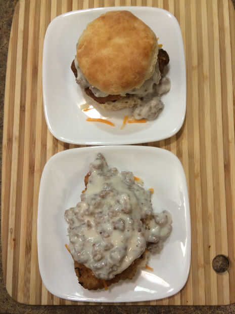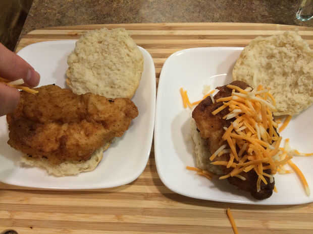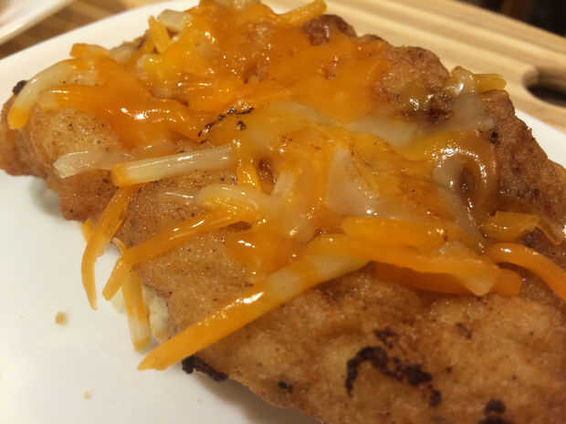 Comience con su pollo frito. Agregar tu favoritos cheddar y fundirlo. Esto se puede hacer en el asador si el pollo no es lo suficientemente caliente como para derretir rápidamente.
