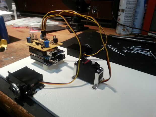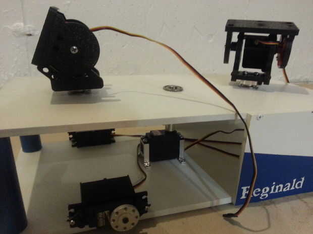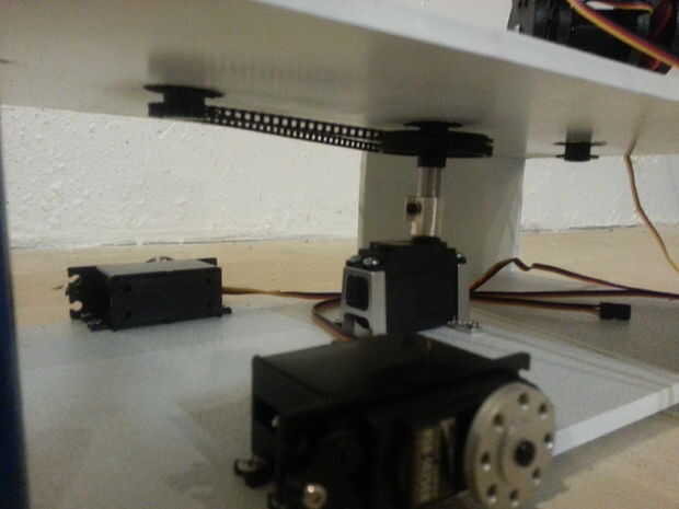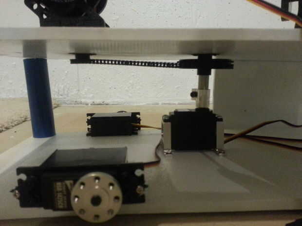 Una cadena entonces se envuelve alrededor de la mitad para el puesto de lateral, donde el servo puede pan sin esfuerzo los soportes alrededor.
