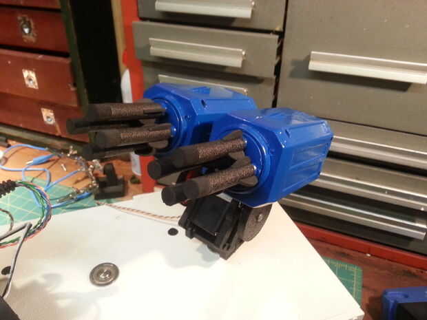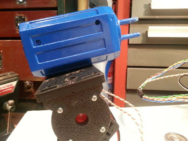 Ver las fotos del proceso de cómo interconectó las torretas a la placa de soporte de inclinación.