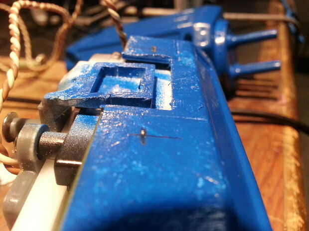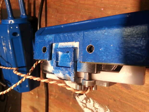 Montaremos las torretas en el soporte de inclinación por perforación de agujeros en la torreta y dejando las tuercas bien puestas. Perforación a través de la plataforma de inclinación, insertaremos a pernos con las tuercas de la interfaz. Yo los agujeros perforados en una de las mitades, tuve que hacerlo porque no hay suficiente espacio en la plataforma para adaptarse a ambas torretas perforados en el centro.