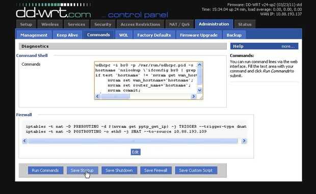 En el DD-WRT interfaz, seleccione "Administración" y luego "Comandos". En el cuadro de texto de comando, copiar y pegar lo siguiente: