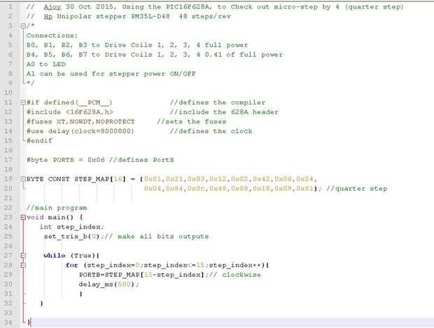 - C-código para el PIC16F628A comprobar hacia fuera de modo de paso/4