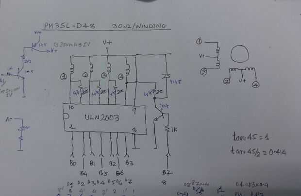 - Circuito de controlador ULN2003 y esquemática de la bobina