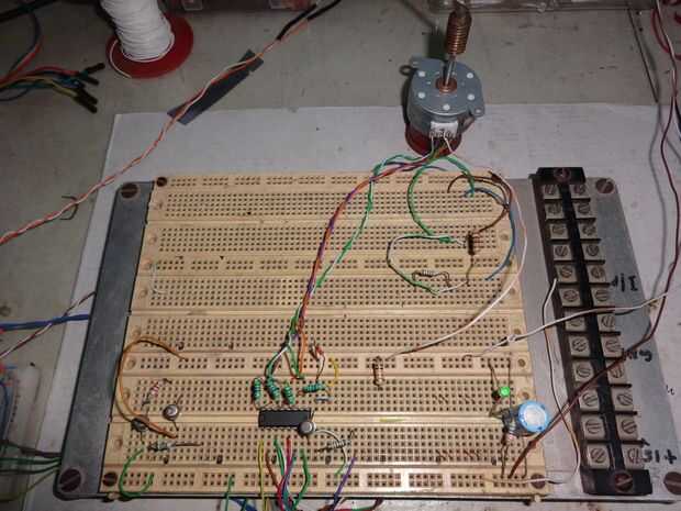 Para comprobar que esto me aparejó un circuito basado en el ULN2003 IC controlador con entradas conectadas a las salidas de un microcontrolador PIC16F628A.