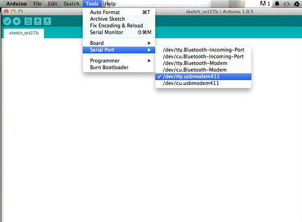 Continuación, seleccione Herramientas > Puerto serie > /dev/tty.usbmodem441