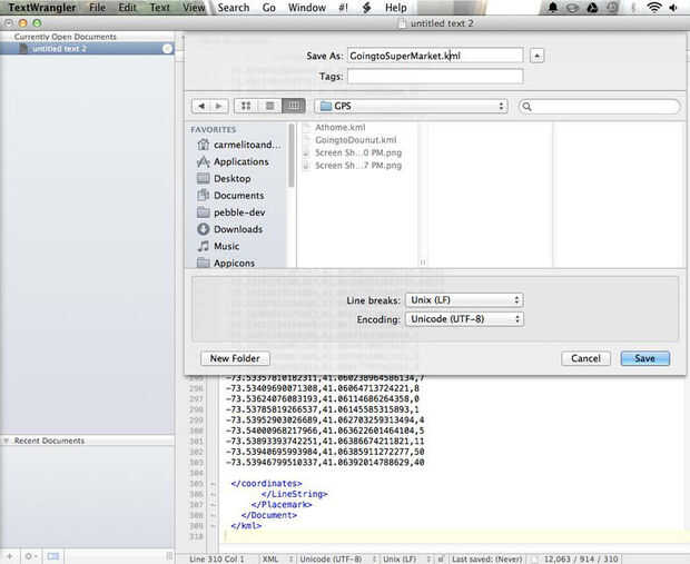 Clic en el botón analizar por debajo de la primera caja de texto y copiar la salida KML y pegarla en cualquier editor de texto como se muestra en la pantalla arriba y guardarlo con extensión .kml.
