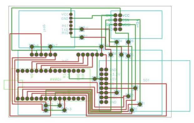 Muy rápidamente nos dimos cuenta de que deberíamos añadir un transmisor inalámbrico de RF24 a bordo y por qué no una tarjeta SD. Segunda generación PCB nació y fue doble cara.