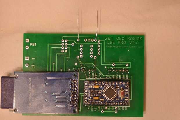6. prueba de conjunto por transferencia y ejecuta el bosquejo de LBE en el Arduino con el poder a través de cable USB conectado a laptop. Solucionar si errores de visualización o SD tarjeta. Es normal que la pantalla tener un pequeño parpadeo de alimentación USB. Batería de 9 voltios corregirlo más adelante.