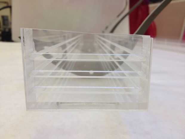 Quería maximizar la longitud de la tira de papel grabado, sino también mantenerlo seco. Construí una caja de acrílico transparente para sostener el papel y mantener en una correcta orientación a las cámaras. Utilicé una sierra de mesa, y molino para cortar muescas en los lados para recibir la Asamblea de aluminio y para poder deslizar en tiras del papel sensible de agua montado en aluminio.