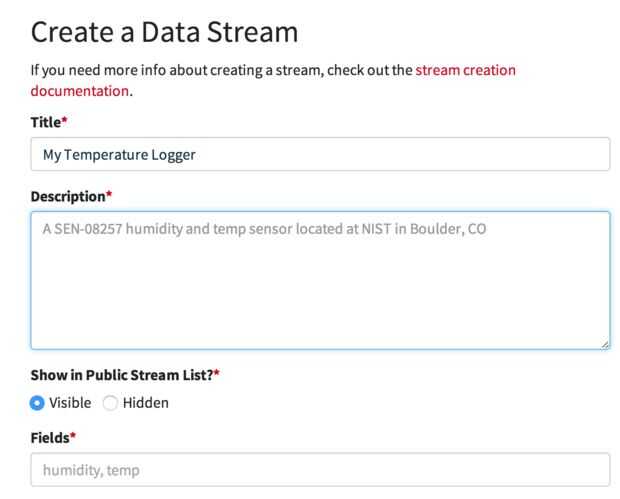 Crear una secuencia de datos en SparkFun, siga este enlace para ello. https://Data.Sparkfun.com/streams/make