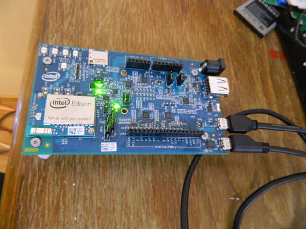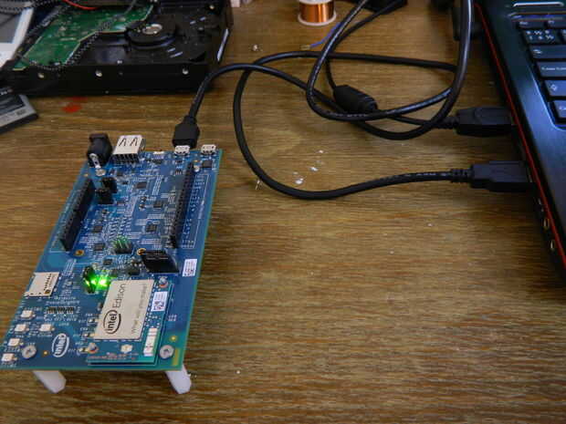Conecte el tablero a la PC vía USB. Compruebe que el interruptor al lado de los puertos USB en el Edison es hacia los puertos USB.