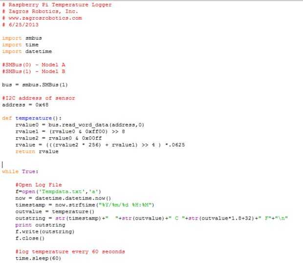 Lee la temperatura en el sensor de temperatura cada 60 segundos y registra en un archivo de texto (Tempdata.txt)