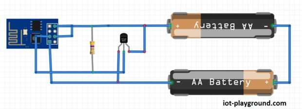 A continuación se muestra el diagrama de conexión. En lugar de ESP8266-01 puede utilizar diferentes tipos de ESP8266. También puede usar 3, 3V en lugar de alimentación (AMS1117-3.3) de 2 pilas AA.
