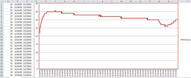 Este es un registrador de temperatura 24h altamente avanzado que registra la temperatura cada 15 segundos y que promedio durante 1 min y 12mins. El valor de 12min promediado se traza en la línea de tiempo en una pantalla OLED de 128 x 64. La media de