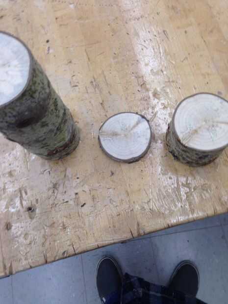 Luego llevará el registro a la Sierra de Sierra de cinta o chop. Usted puede cortar la pieza como siempre grande que desea la mina en como 5 pulgadas
