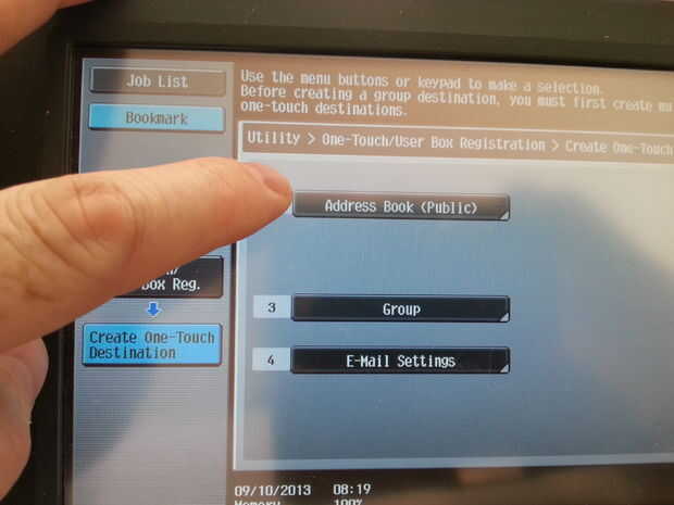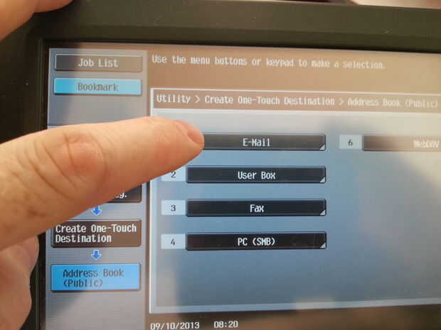 Registro de correo electrónico en la fotocopiadora (2 / 4 paso)