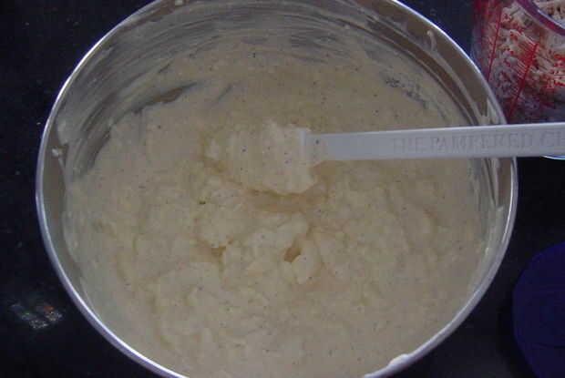 Mezclar bien, luego girar hacia fuera un pedazo de plástico grande (unos 20-24 pulgadas de largo)