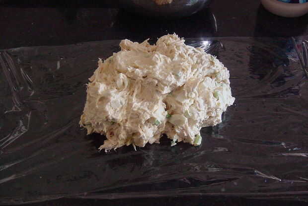 #2 no forma en el registro, pero en cambio la línea un pequeño cuenco con el abrigo plástico y paquete firmemente la ensalada de pollo en. Cubra y refrigere. Cuando esté listo para servir el recipiente encima en un plato para servir, retirar el envoltorio plástico y servir la ensalada de pollo "bola" con galletas.