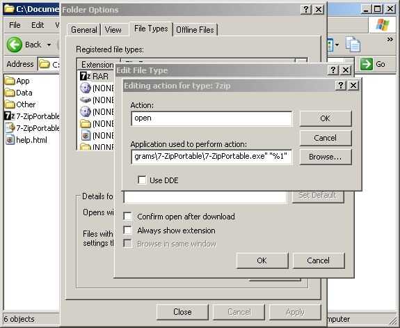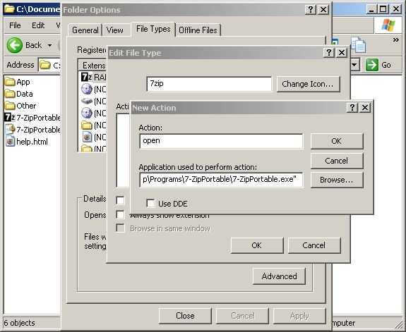Tipo «abierto» en el cuadro de la acción (arriba) y luego haga clic en examinar para buscar el archivo .exe. Ok hit después de eso. Si empiezas a tener problemas para abrir archivos con la extensión nueva sería una buena idea para volver atrás y editar la acción. Windows agrega automáticamente un %1 a la línea de ubicación del archivo final, lo que representa la ubicación del archivo que desea abrir con el programa asociado. Para solucionarlo simplemente agregará comillas alrededor de "%1" y que deberían solucionar el problema.