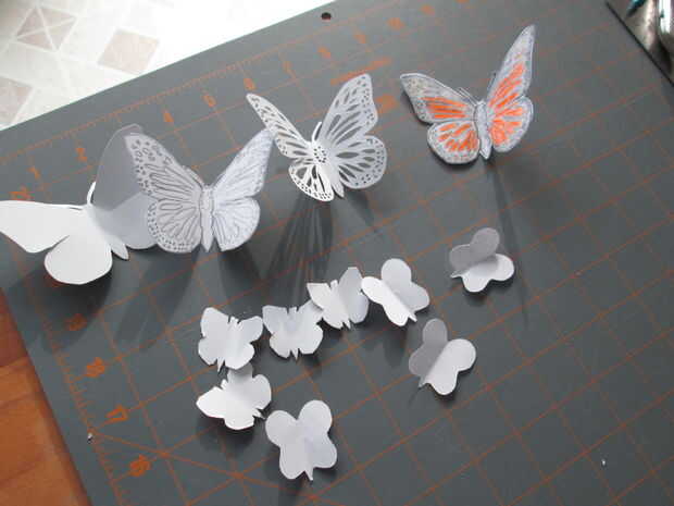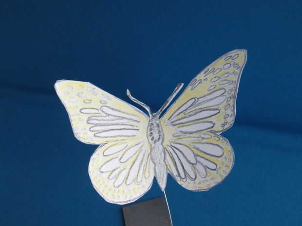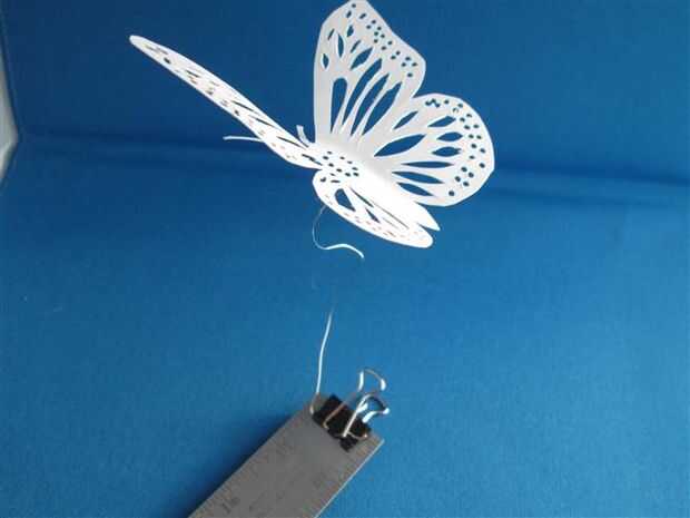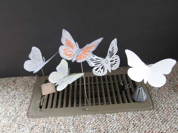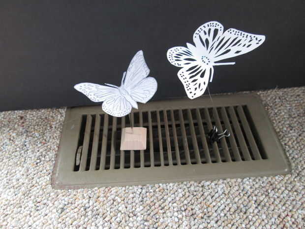 No era tan fácil como pensé. Experimenté con diferentes formas y diferentes tipos de papel. Finalmente surgió la idea de utilizar patrones de mariposa - volando en el aire como se escapó de la ventilación.