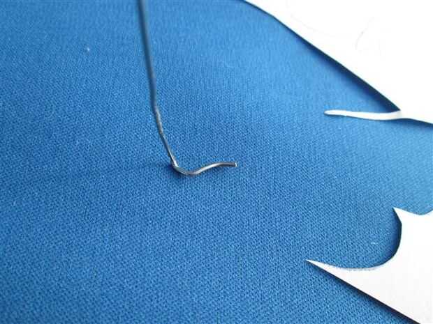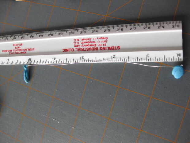 Con los alicates - puse una curva de 90 grados para crear una sección de aproximadamente 1/2 pulgada. Desde aquí pongo un patrón de Z en la sección ½. El patrón Z junto con la masilla de montaje elimina la posibilidad de la mariposa de papel voltearse (aprox) en el extremo del alambre.