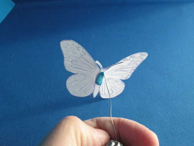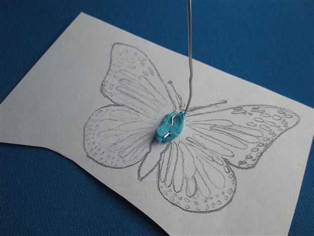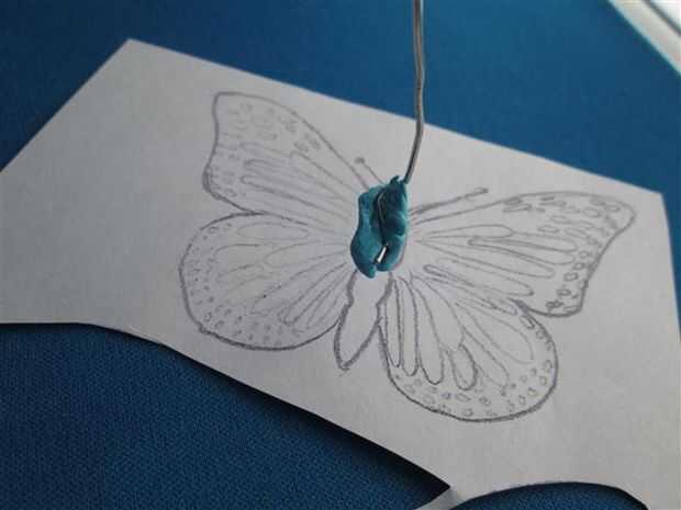 En un extremo del cable - que va a ser montado a la mariposa de papel, hice algunos formando.