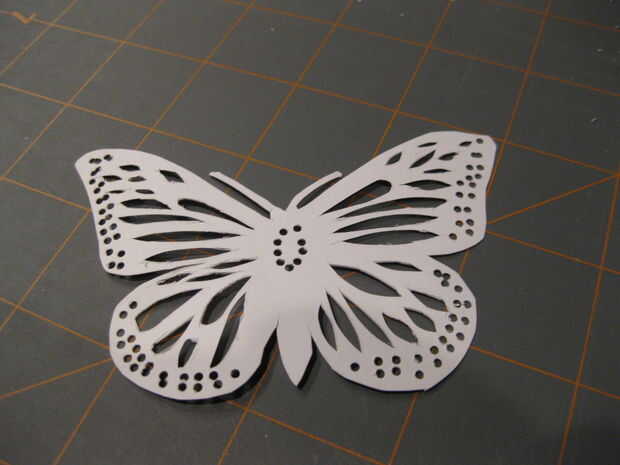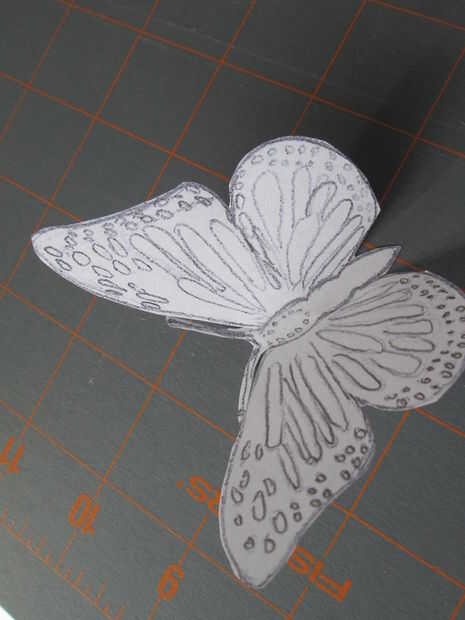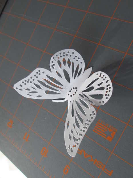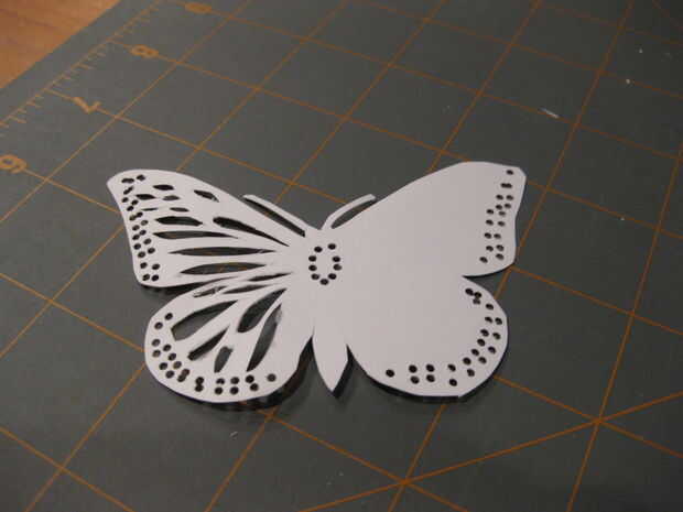 Empecé con un patrón de mariposa de papel de peso pesado que corte la hoja con las tijeras.