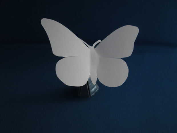 Que no hacer nada que corte la mariposa de la hoja con las tijeras. Cuando terminé de cortar No quiero los patrones del ala de lápiz para mostrar, por lo que he hojeado por el lado de patrón frente. Luego plegar las alas en el cuerpo.