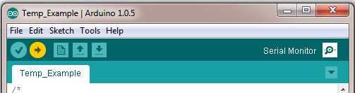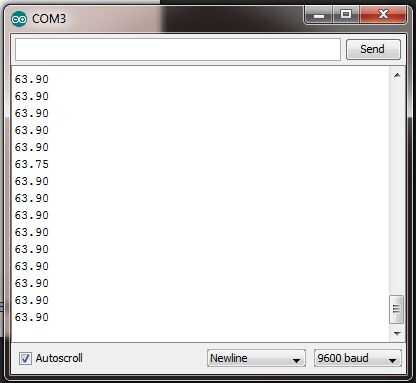 4. usted debe ahora ver la actualización de la temperatura en el Monitor Serial! Se actualizará cada 1 segundo (1000ms).