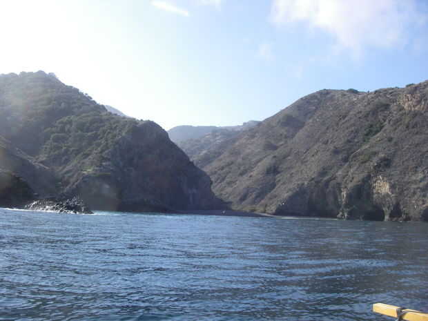 Yermas laderas marrones en busca de una milla o dos y luego a un valle lleno de árboles verdes.