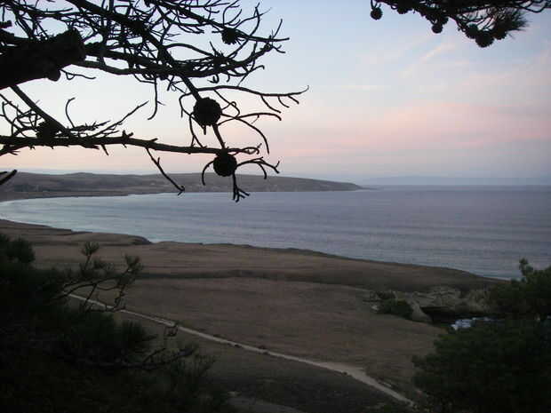 Mientras me hace legal, marca Ranger ablandado para arriba y consiguió entusiasmo por hacer que mi estancia sea buena. Dijo me reuniría en 9:00 la mañana próxima para mostrarme algunas cosas, y anima a tomar los pinos de Torrey caminar esa noche. Mis piernas desesperadamente querían hacer algunos caminar, así que lo hice. Aquí es la puesta de sol vista a través de las ramas de los pinos de Torrey, un soporte de árboles raros encuentra solamente aquí y en otro stand cerca de San Diego. Son restos de la edad de hielo pasada.
