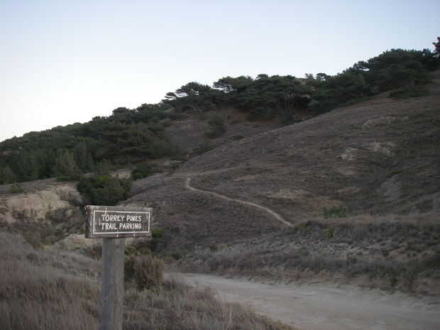 El signo "Torrey Pines camino de estacionamiento" es extraño. No hay manera de traer el coche a la isla.