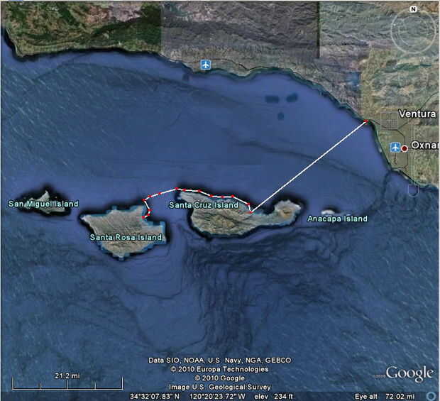 Entonces navego mi canoa a lo largo de la costa a la isla de Santa Rosa.