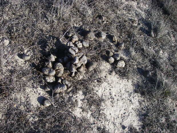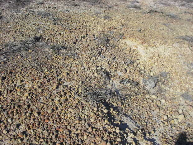 Les paso algunas muestra de ganado, entonces veo la manada pequeña en la distancia. La parte superior de la isla está cubierta de piedras esféricas pequeñas que parecen un poco como gránulos de taconita de Duluth MN.