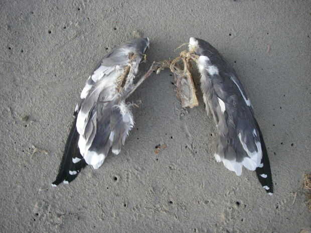 Cargar mi gran bolso seco hasta la playa. Me arrastre la canoa en los palillos y voltearlo, que hace que una obra de arte en la arena. Hay una reliquia de ave sobre la arena. ¿Mi ángel de la guarda? ¿Qué come un pájaro y deja intactas las alas?
