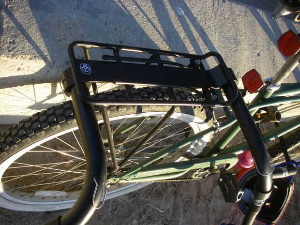 Este caballero no necesita quemar gasolina y de su ejercicio. Dice la rejilla funciona bien, pero es un poco tambaleante. Un bastidor similar soldado al marco de la bicicleta podría ser mucho más rígido.