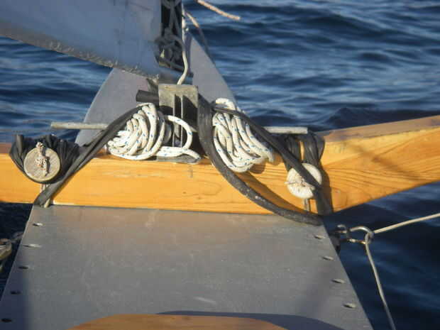 Tire el ancla y la línea del ancla alrededor de la bobina. Colgar la linterna alrededor de mi cuello y me desate la vela. I volver a colocar la tapa de escotilla y empezar a navegar.