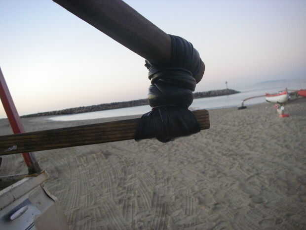 No trate de conducir demasiado cerca de mi canoa. Mi carro se queda en las pistas del neumático en la playa esta vez.