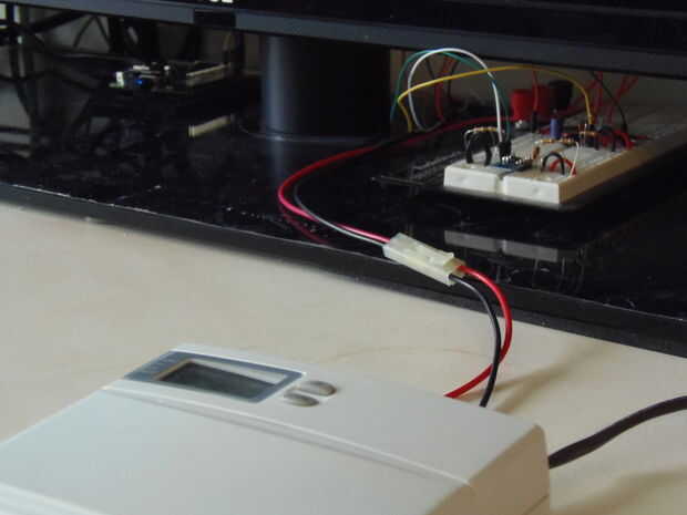 Hay un montón de Instructables que muestran cómo hacer un termostato. ¿Pero lo que si ya tienes un termostato, y desea registro o monitor cuando da vuelta apagado y encendido? Este Instructable muestra cómo utilizar un optoacoplador para obtener voltajes de DC nivel de lógica de un termostato programable hogar común que une a una CA de 24 voltios de calefacción y refrigeración. También incluye un sensor de temperatura y un código adecuado para correr en un Raspberry Pi log estado de termostato gráfico, eventos, y temperaturas.