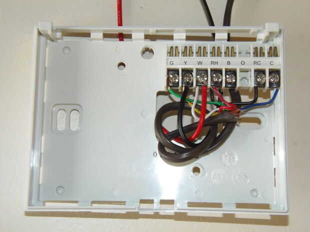 Apague su sistema de calefacción y refrigeración y utilice el multímetro para verificar que la energía está apagada. Retirar el termostato de su base, exponer el cableado. Añadir dos hilos adicionales de conectar a los terminales del par de alambres que eligió en el paso anterior.